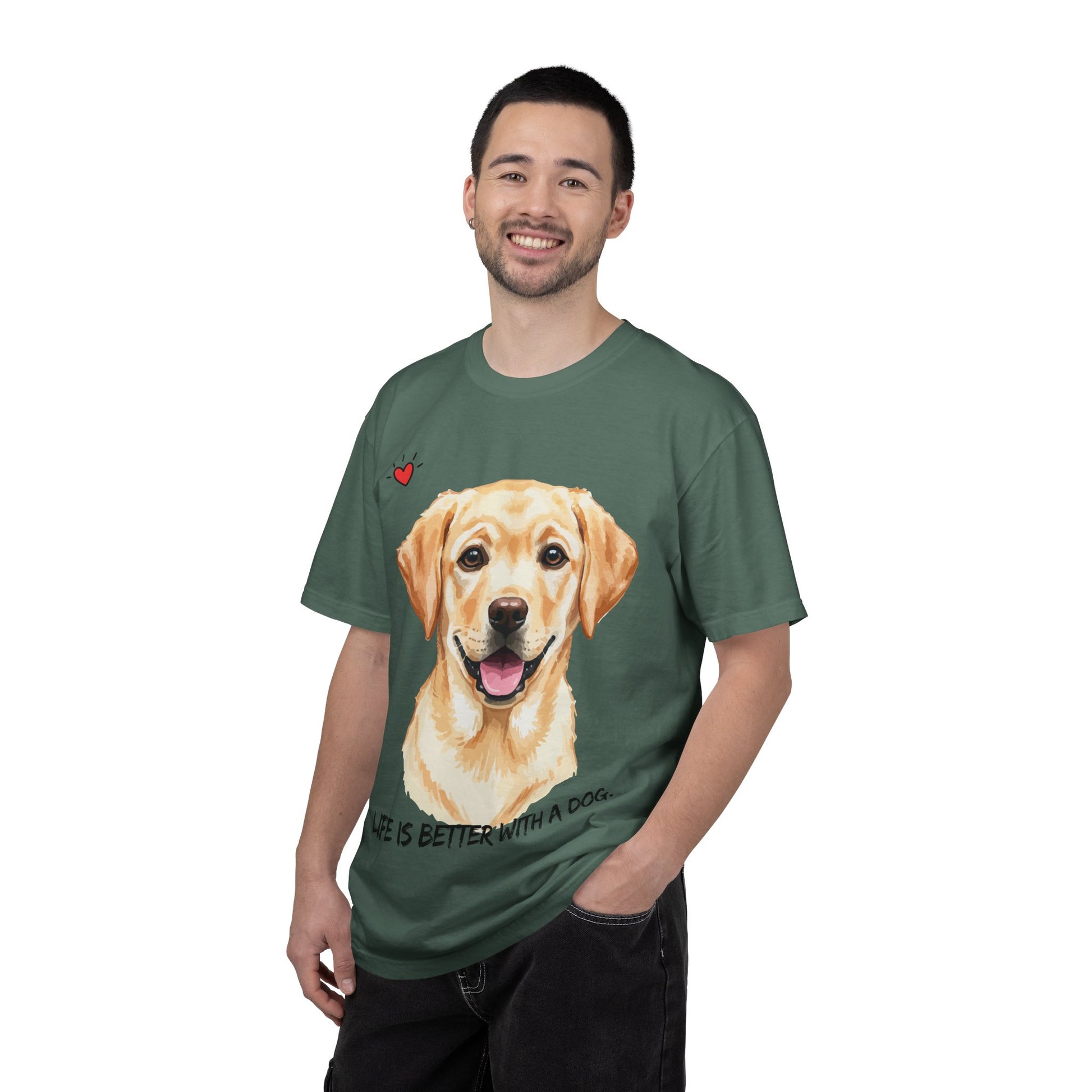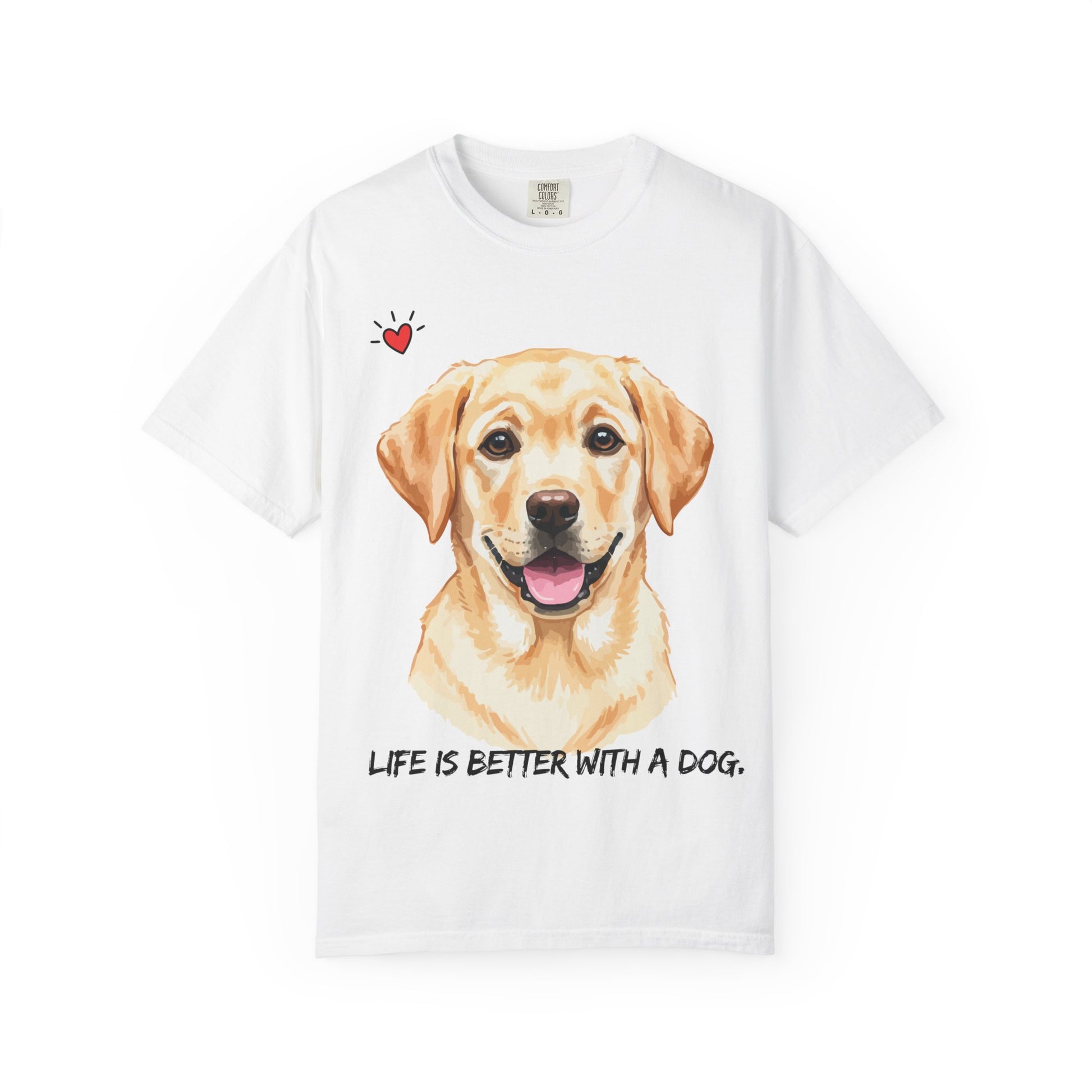 Life Is Better With A Dog T-Shirt | Golden Lab Graphic Tee | Dog Lover Gift | Vintage Wash Cotton Shirt